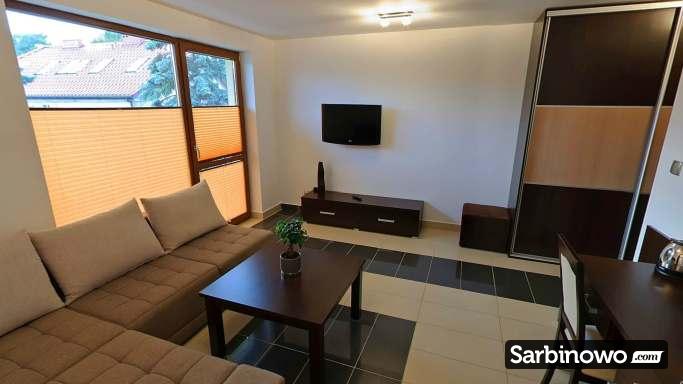 Cztery komfortowe pokoje (19 m²) z wyjściem na taras wspólny o powierzchni 60 m². W każdym z pokoi znajduje się łazienka ze szklaną kabiną prysznicową, małżeńskie łoże (z możliwością dostawki), TV LCD oraz lodówka i czajnik elektryczny.
